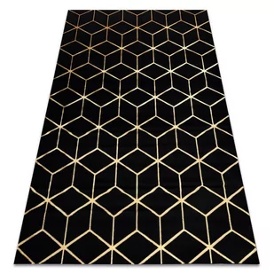 Cechy charakterystyczne dywanu GLOSS: połączenie koloru czarnego i złota, które idealnie sprawdzi się w każdym wnętrzu; krótkie włosie miłe w dotyku, dzięki czemu użytkowanie staje się czystą przyjemnością; do produkcji zostały użyte trzy rodzaje przędzy – polipropylen i poliester shrink oraz shiny poliester, co zapewnia trwałość na lata; dywan dostępny w rozmiarach: 80x150 cm, 120x170 cm, 140x190 cm, 160x200 cm, 180x270 cm, 200x290 cm, 240x330 cm, 280x370 cm, dzięki czemu wpasują się do każdego wnętrza; ciekawy efekt 3D wprowadza nutę nowoczesności, którą goście z pewnością będą zachwyceni. Nieszablonowe połączenie kolorów sprawia, że motyw ten sprawdzi się we wnętrzach, w których chcemy przełamać klasykę nie odejmując elegancji i szyku. Połączenie stylu i funkcjonalności dzięki zastosowaniu krótkiego włosia przypadnie do gustu nie tylko miłośnikom sprzątania.
