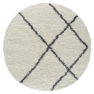 Okrągły dywan "Shaggy Luxe" w kolorze kremowym z szarymi abstrakcyjnymi paskami to idealny wybór dla każdego, kto ceni sobie nowoczesną i stylową atmosferę.