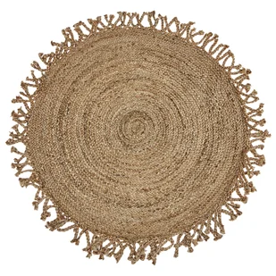 Dekoracyjny dywan z juty. Ten jutowy dywan to kwintesencja stylu boho. Wykonany z juty, jest trwały, wytrzymały i łatwy w pielęgnacji. Ozdobne frędzle sprawiają, że dywan ten natychmiast przyciąga wzrok i stanowi wyjątkowy element dekoracyjny. Połącz go z neutralnymi tkaninami lub rattanowymi i drewnianymi meblami, aby stworzyć prawdziwą atmosferę boho.