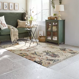 Pomimo szorstkiej, mocnej struktury, ten dywan charakteryzuje się wysoką elastycznością pod stopami, izolacją akustyczną i cieplną, a nawet zdolnością do regulacji temperatury. Przy całej swojej praktyczności na co dzień, wygląda również cudownie ciepło i domowo. Ten dywan nie tylko ma czysty, naturalny kolor, ale również wpleciono w niego czarujące ornamenty kwiatowe, które sprawiają, że podłoga wygląda jak pokryta ogromnym obrazem. Ponadto zarówno juta, jak i bawełna pochodzą z odnawialnych źródeł, dzięki czemu dywan jest przyjazny dla środowiska.