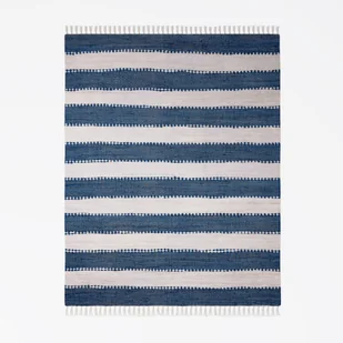 dywan może być po obu stronach bez zmiany wzoru. Daje to elastyczność, aby cieszyć się tym samym atrakcyjnym wzorem po obu stronach dywanu i obracać go w dowolnym momencie, aby zrekompensować zużycie i przedłużyć żywotność dywanu - Przyjazny dla alergików: dzięki niskim właściwościom kłaczków dywan jest również odpowiedni dla alergików Dywan Chindi "Aarav" w pięknym niebiesko-białym wzorze to przyjazny dla środowiska i wyjątkowy element do Twojego domu. Wykonany z resztek tkanin pochodzących z recyklingu, głównie z tkanin bawełnianych, dywan ten demonstruje zaangażowanie w zrównoważony rozwój i ochronę zasobów. Dywany Chindi są tkane ręcznie z wielką dbałością o szczegóły, co oznacza, że mogą wystąpić niewielkie różnice w rozmiarze i rysunku wzoru.
