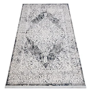 Modele tego typu nadają się tam, gdzie wnętrze posiada gładkie ściany i stonowane meble, ponieważ dając dodatek w postaci dywanu z marmurkowym wzorem, sprawimy, że będzie to punkt centralny w danym pomieszczeniu. Dodatkowymi plusami oferowanego przez nas produktu jest również fakt, że: posiada on bardzo dobrą jakość ze względu na zastosowane w nim materiały – polipropylen oraz dodatek poliestru. Oba surowce są odporne chemicznie, nie pozwalają na zawilgotnienie materiału oraz na wysokie ścieranie, co sprawia, że nasz dywan nowoczesny będzie długo służył właścicielowi; dodatkowe frędzle uatrakcyjniają dywan; dwie wysokości runa sprawiają, że dywan jest oryginalny i miękki; ma on wysoką gramaturę, przez co jest odporny na uszkodzenia i odkształcenia materiału. Kolorystyka granatowo-kremowa w połączeniu z wzorem vintage pozwoli na nowe odkrycie klasycznego stylu.