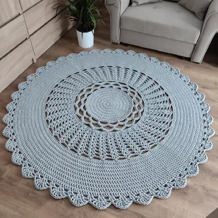 Dywan o średnicy 170cm, wykonany metodą szydełkowania z polskiego sznurka bawełnianego 5mm. Idealny do różnych wnętrz. Świetny do salonu, jadalni, czy innego dużego pomieszczenia. Będzie pięknym i praktyczny ...