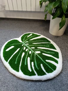 Dywan w kształcie liścia monstery, miękki, zielony dywan