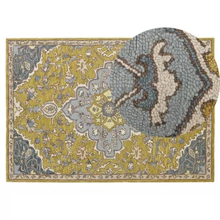 Szczegóły: Rodzaj: krótkie włosie Styl: klasyczny Kolor: żółty Odcień: musztardowy Materiał: wełna Podłoże: