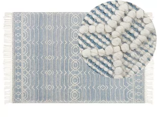 Ten wełniany dywan na pewno wyróżni się w mieszkaniu i zachwyci wszystkich twoich domowników. Produkt został zrobiony ręcznie z wysokiej jakości materiałów, które czynią go wytrzymałym, ale też miękkim i przyjemnym w dotyku. To sprawia, że akcesorium jest świetnym dodatkiem do przestrzeni codziennych. Jego ciepły, jasnoniebieski kolor, połączony z białym, powoduje, że akcesorium dopasować można do wielu różnych stylów wnętrzarskich, od retro po nowoczesne.