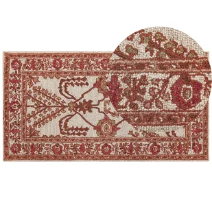 Prostokątny, ręcznie tkany wełniany dywan vintage z orientalnym wzorem. Dzięki licznym ornamentom, liniom i liściom w różnych odcieniach czerwieni, brązu i pomarańczy, ten ponadczasowy beżowy dywan z pewnością wypełni Twój salon typowo orientalną atmosferą. Prostokątny dywan orientalny jest również wykonany z łatwych w pielęgnacji, wysokiej jakości włókien wełnianych. Wełniany dywan jest również przyjemny w dotyku, dzięki czemu idealnie nadaje się jako obicie łóżka lub sofy. Dzięki wytrzymałemu spodowi, ten wełniany dywan będzie chronić podłogę przez wiele lat.