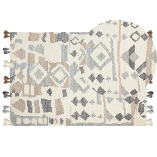 Ciepły kolor tego dywanu, a także jego przyciągający uwagę geometryczny wzór zachwycą nawet najbardziej wymagających domowników. Akcesorium zostało zrobione ręcznie z wełny oraz bawełny - jest zatem bardzo wytrzymałe. Poza tym jest też łatwe w utrzymaniu i bardzo przyjemne w dotyku. Design kilimu sprawia, że najlepiej prezentować się będzie we wnętrzach boho czy rustykalnych, ale równie dobrze sprawdzi się w nieco bardziej nowoczesnych pomieszczeniach.