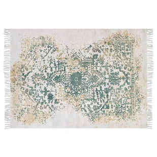 Dywan w stylu orientalnym. Prezentowany dywan wniesie odrobinę egzotyki do twojego pomieszczenia dzięki pięknemu i bogatemu wzoru orientalnemu. Został ręcznie wykonany z wysokiej jakości materiału, dzięki czemu jest niesamowicie miękki oraz bezproblemowy w utrzymaniu. Ponadto posiada efekt postarzania, który nadaje dywanowi stylu vintage. Połóż go w salonie lub w sypialni, aby ozdobić swoją przestrzeń tym nietuzinkowym akcesorium i cieszyć się nim.