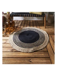 Ethnical Life Dywan w kolorze beżowo-czarnym z juty - Ø 90 cm