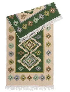 Dywan z frędzlami Kilim dwustronny zielony 60 x 120 cm