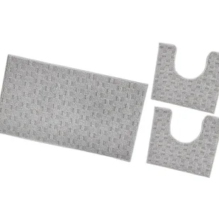 Dywanik łazienkowy 3D Miękki Spleciony Chłonny Antypoślizgowy Zmywalny Dywanik Nocny Zestaw 3-Częściowy Szary