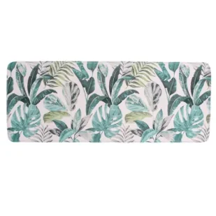 Praktyczna i stylowa długa mata łazienkowa o wymiarach 45x120 cm z tropikalnym motywem liści w odcieniach zieleni, turkusu i szarości to doskonałe rozwiązanie do większych przestrzeni. Świetnie sprawdzi się nie tylko w łazience, ale również w kuchni, przedpokoju czy przy łóżku. Wykonana z miękkiego, przyjemnego w dotyku materiału, który skutecznie chłonie wodę i szybko schnie, zapewniając komfort i ochronę podłogi. Antypoślizgowy spód zapobiega przesuwaniu się maty, zwiększając bezpieczeństwo użytkowania. Nowoczesny wzór inspirowany naturą nada wnętrzu świeżości i oryginalnego charakteru.