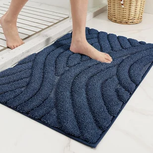 Niebieska antypoślizgowa mata łazienkowa, 40 x 60 cm, chłonna, wykonana z miękkiej mikrofibry, nadaje się do prania w pralce i trwała.