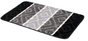 Pasy zdobione wyrzeźbionymi rombami na tych dywanikach dodają trójwymiarowego efektu, który nie tylko cieszy oko, ale też stymuluje zmysły, czyniąc każde wejście do łazienki wyjątkowym doświadczeniem. Dane techniczne: Skład: 100% Akryl Kształt: prostokąt Kolor: Czarny Wymiary: