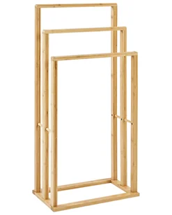 Stojak na ręczniki. Styl: Boho. Kolor główny: Jasne drewno. Rodzaj materiału: Drewno. Materiał: Drewno bambusowe.