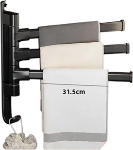 Oszczędność miejsca: Ten obrotowy drążek na ręczniki ma przemyślaną konstrukcję, która maksymalizuje wykorzystanie przestrzeni w łazience. Jego obrotowe ramiona pozwalają na jednoczesne powieszenie wielu ręczników, zapewniając jednocześnie ich schludny porządek i łatwy dostęp. Łatwa instalacja: Pożegnaj się ze skomplikowanymi instalacjami! Ten drążek na ręczniki można bez wysiłku zamontować na ścianie łazienki bez konieczności wiercenia lub uszkadzania płytek.