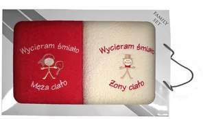 Komplet ręczników w pudełku 2 szt 70x140 Wycieram Śmiało Ciało czerwony 23 kremowy to komplet ręczników z haftem stworzony z potrzeby poszukiwania coraz to nowych innowacyjnych rozwiązań, oraz kreowania pomysłów na prezent dla najbliższych. Niesamowicie miękkie i doskonale chłonne, będą niebanalnym uzupełnieniem wystroju każdej łazienki, stanowiąc jednocześnie idealną pamiątkę na długie lata. Twoja łazienka też je pokocha, a Ty pokochasz odmienioną łazienkę. Zapakowane w gustowne pudełko, oryginalnie się prezentujące, będą stanowić nietuzinkowy prezent.