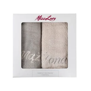 Ręczniki Miss Lucy zestaw 2 sztuki Mąż Żona 70 x 140 cm ciemnobeżowy + jasnobeżowy