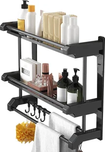Jest wodoodporny i odporny na rdzę, niełatwo go zdeformować. PRZYDATNE AKCESORIA] Stojak do przechowywania jest wyposażony w drążek na ręczniki i 5 haczyków pod spodem, zapewniając miejsce na małe przedmioty i ręczniki. [HOLLOW OUT DESIGN] Ta szersza o 12 cm płyta do przechowywania oferuje więcej miejsca do przechowywania i ma prosty system odprowadzania wody. Nadmiar wody może spływać przez strategicznie rozmieszczoną podstawę kratki, utrzymując przybory prysznicowe w czystości i suchości. [ZWIĘKSZONA PRZESTRZEŃ PRZECHOWYWANIA O 22 CM] Dwuwarstwowa półka nadaje się do przechowywania większych butelek, ułatwiając ich przenoszenie i umieszczanie.