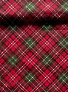 Bawełniany plamoodporny bieżnik czerwonego koloru z wzorem Kratkę