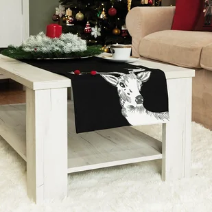 Bieżnik 35x140 cm, czarny z biało-szarym nadrukiem renifera, Rudolf