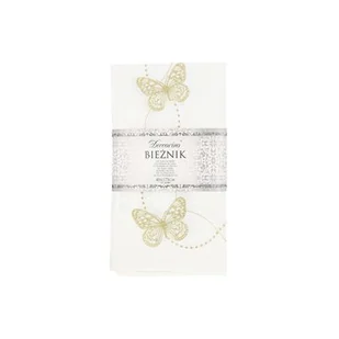 Bieżnik biały ze złotymi motylami 175 x 40 cm Deccorino