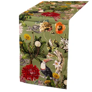 Bieżnik na stół Alexandra House Living zielony materiał 33 x 180 cm bawełna w kwiaty