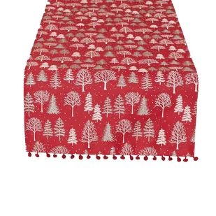 Bieżnik świąteczny z pomponami 40x140 Zimowa magia czerwony 003