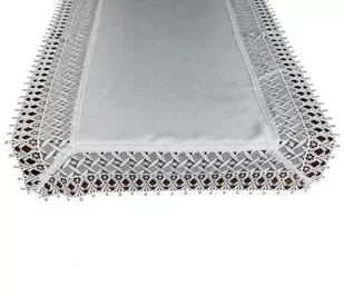 Bieżnik dekoracyjna wykonany jest z przyjemnej w dotyku tkaniny lnianopodobnej. Wykończony jest elegancką gipiurą. Wysoka jakość materiału sprawia, że jest on łatwy w użytkowaniu. Proszę pamiętać, że komputer wyświetla kolory według indywidualnych ustawień i właściwości. Tolerancja wymiarów: