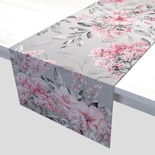 Bieżnik z tkaniny wodoodpornej, z nadrukiem szaro-różowym, wykończony listwą, rozmiar 38x140 cm, Azalea
