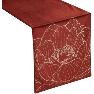 Eurofirany Obrus bieżnik 35x180 Blink 13 ceglasty złoty kwiat welurowy