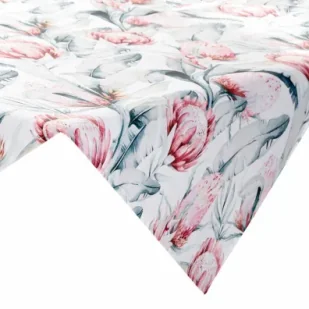 Dodaj swojemu stołowi letniego uroku dzięki dekoracyjnemu obrusowi uszytemu z wodoodpornej tkaniny. Jego piękny nadruk z motywem letnich kwiatów wprowadzi do Twojej przestrzeni świeżość i kolor, tworząc idealną atmosferę do spotkań na świeżym powietrzu. Dzięki wodoodpornym właściwościom obrus jest odporny na wilgoć i łatwy w czyszczeniu, co czyni go doskonałym wyborem na taras, balkon czy do ogrodu. Stylowy i praktyczny – sprawi, że każdy stół nabierze wyjątkowego charakteru!Gramatura materiału: 150 g