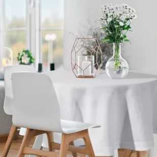 Eleganckie nakrycie stołu sprawia, że każda uroczystość jest wyjątkowa i na długo pozostaje w pamięci. Obrus w kolorze białym wyróżnia tkanina przypominająca płótno oraz podwójna listwa okalająca jego brzegi. Niezwykle gustowny, a zarazem prosty w swojej formie obrus znakomicie udekoruje stół oraz zapewni odświętną atmosferę podczas wspólnego celebrowania posiłków. Skład: 100% poliesterGramatura: 255 g/m2