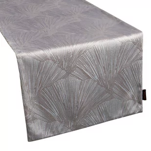 Eurofirany Obrus 40x140 Goja srebrny bieżnik liście miłorzębu Pierre Cardin z błyszczącym nadrukiem welurowy