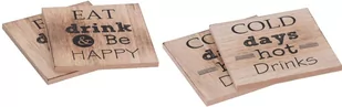 Komplet drewnianych podkładek w praktycznym pudełku z winylowym wykończeniem chroni blat i tłumi hałas od szklanek i kubków. Dzięki pudełku podkładki będą zawsze pod ręką. Produkt jest dostępny w 2 wariantach nadruku bez możliwości wyboru.