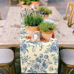 【Niebieski bieżnik w kwiaty】Beżowy bieżnik z nadrukiem w wyrazistych, żywych kolorach i unikalnym wzorem niebieskiej róży, nadaje mu naturalny, piękny i niepowtarzalny urok vintage.