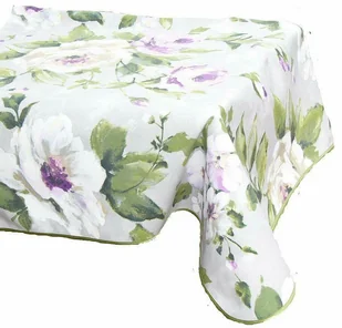 Obrus 140X180 Dekora A Szary Zielony Fioletowy Liście Kwiaty Wykończony Lamówką