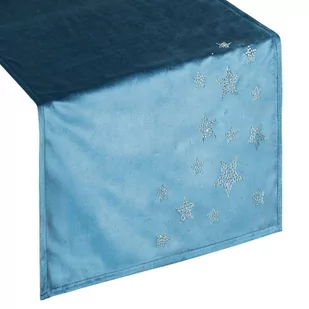 Eurofirany Obrus na stół, dekoracja stołu, na Boże Narodzenie, Boże Narodzenie, dekoracja stołu, gwiazdy, aksamit, granatowy, 40 x 140 cm