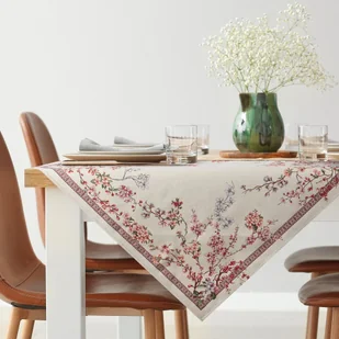 Obrus dekoracyjny gobelin THAI 140x180 Eurofirany naturalny różowy kwitnąca wiśnia