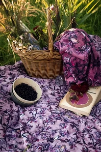 OBRUS kwiatowy w autorski print SŁOWIKI na różowym tle