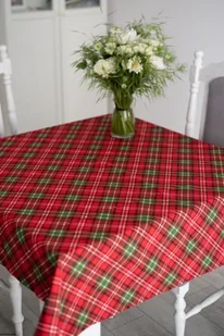 Obrus w kratę świąteczny bawełniany plamoodporny kwadratowy czerwonego koloru