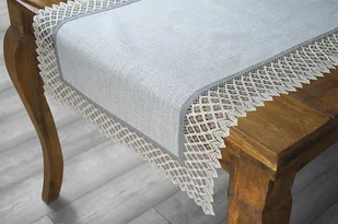 Obrus z koronką 160x160 okrągły plamoodporny lniany Greno