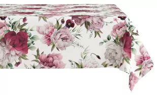 Obrus z nadrukiem w peonie OM01-2 Mariall Kolorystyka: biało-różowo-bordowa Skład: 100% poliester Cechy: Modne wzornictwo i kolorystyka Obrus można skompletować z nakładką, serwetką, bieżnikiem, zasłoną, narzutą oraz poszewką(patrz zakładka " Produkty podobne") Opis: Obrus jest wykonany z miękkiej oraz, przyjemnej w dotyku tkaniny.