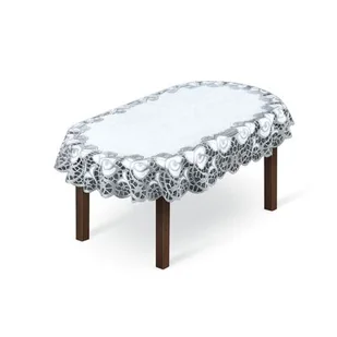 Obrus żakardowy owal 254241/130y 130 x 180 cm biały/szary