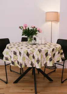 Okrągły obrus plamoodporny bawełniany z wzorem Ornament
