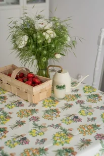 Owalny bawełniany obrus plamoodporny z wzorem Ogród białego koloru