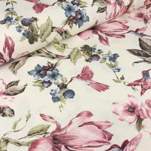 Owalny obrus bawełniany plamoodporny z wzorem Kwiaty i Ptaki