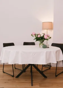 Owalny obrus plamoodporny ecru bawełniany