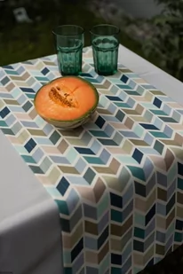 Plamoodporny bawełniany bieżnik niebieski z wzorem Zigzagi